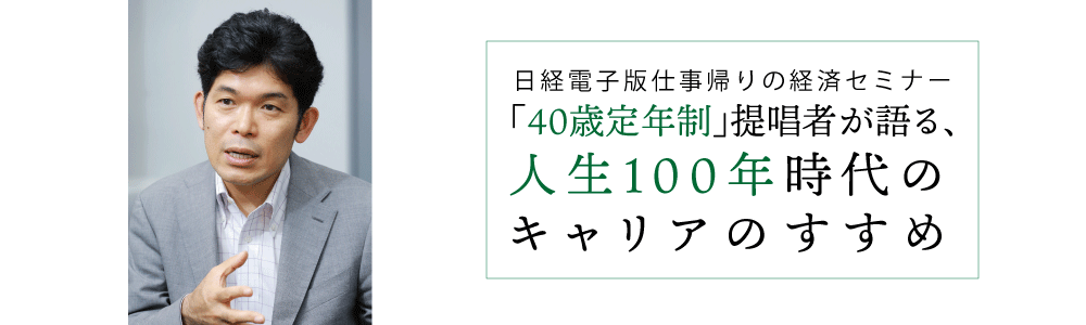 日経電子版は仕事帰りの経済セミナー、『「40歳定年制」提唱者が語る、人生100年時代のキャリアのすすめ』を開催します。