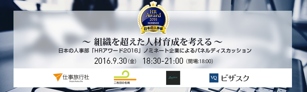 9/30(金)はお忙しい中、ビザスク/仕事旅行社/二枚目の名刺/ローンディール共催の「〜組織を超えた人材育成を考える〜日本の人事部HRアワード2016ノミネート企業によるパネルディスカッション」にご参加いただきありがとうございました!
