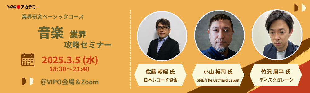 テスト3/5(水)VIPOアカデミー 業界研究ベーシックコース Vol.7 「音楽業界 攻略セミナー」
