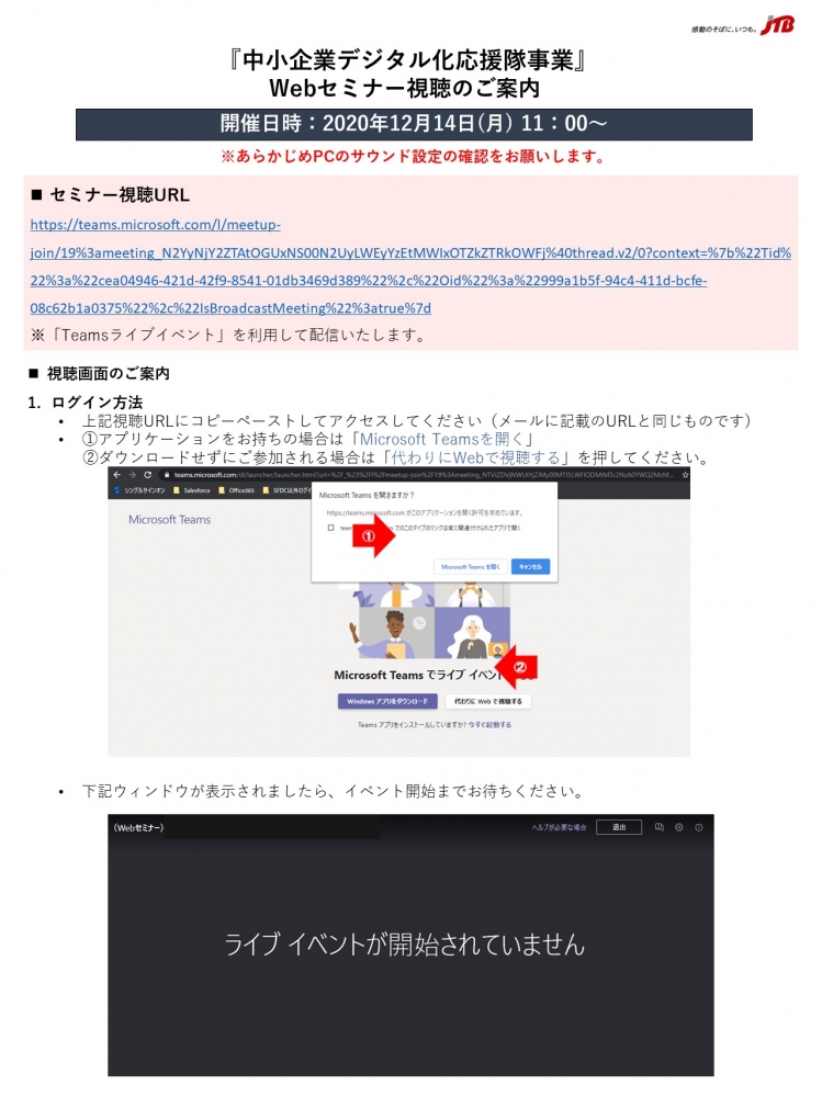 中小企業デジタル化応援隊事業 JTBサポートデスク オンライン説明会・登録会 1月19日11:00