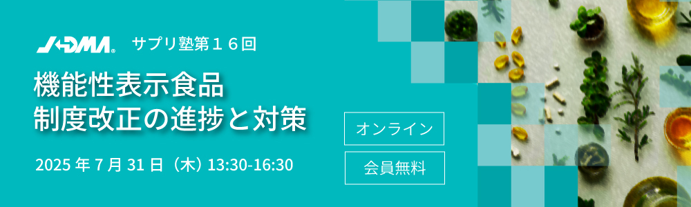 今回のサプリ塾では、現在進行形の機能性表示食品制度の改正のポイントと対応策を解説します。あわせて、業界側で更新した適正広告自主基準なども解説します。講師には消費者庁、厚生労働省に加え、各分野の有識者、業界団体の関係者を招き、実務における具体的な注意点を解説します。参加者からの事前質問も受け付け、事業を進めるうえでの疑問点の解消にも努めます。