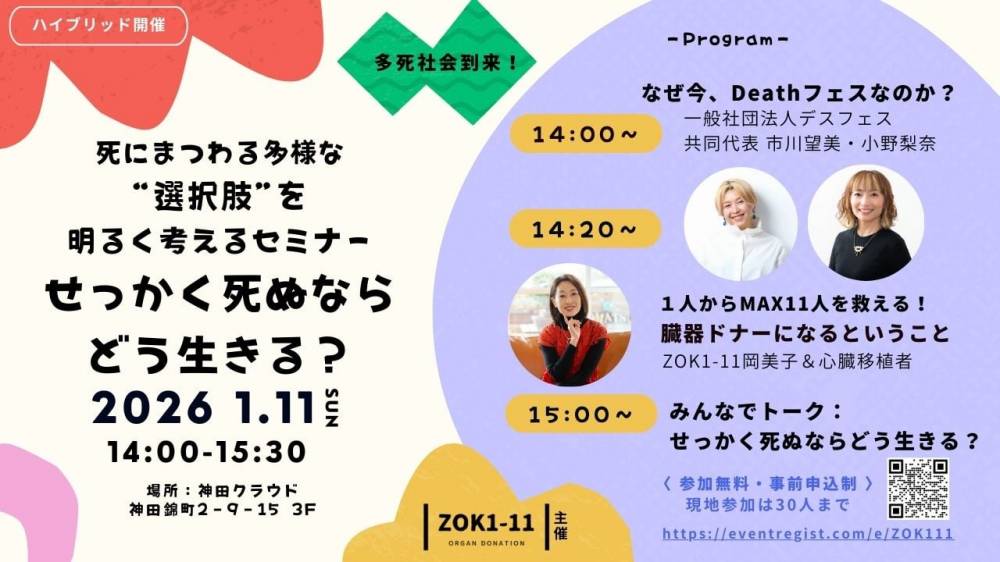 「せっかく死ぬなら どう生きる?」 ~死にまつわる多様な“選択肢”を明るくポジティブに考えるセミナー(リアル&オンライン開催)~