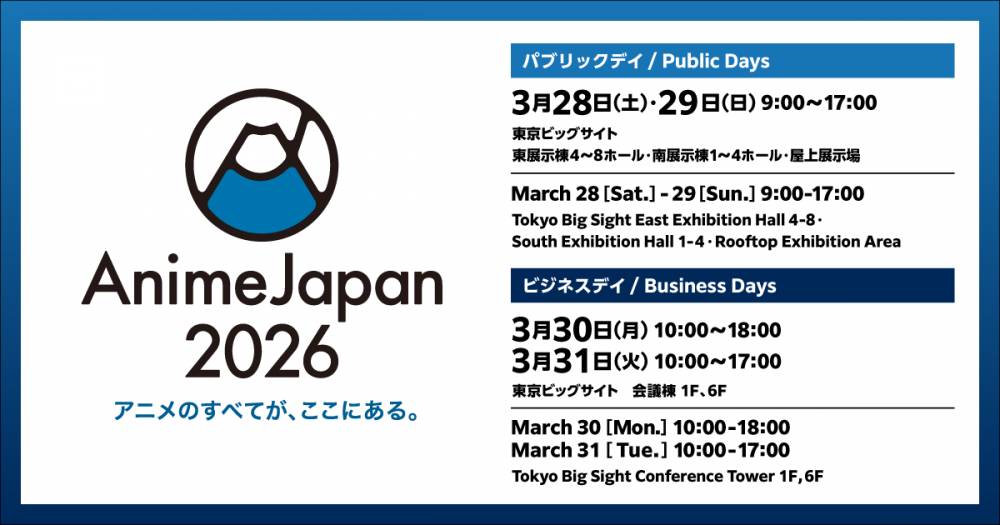 ビジネスデイ2日間、パブリックデイ、ファミリーアニメフェスタ2026 3月28日(土)にご入場いただけます。