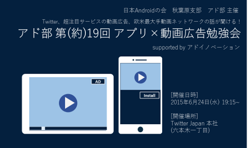 【増員=>100名】【Twitter、女子高生向け超注目サービスの動画広告、欧米最大手動画ネットワークの話が聞ける!】アド部 第(約)19回 アプリ×動画広告勉強会 supported by アドイノベーション