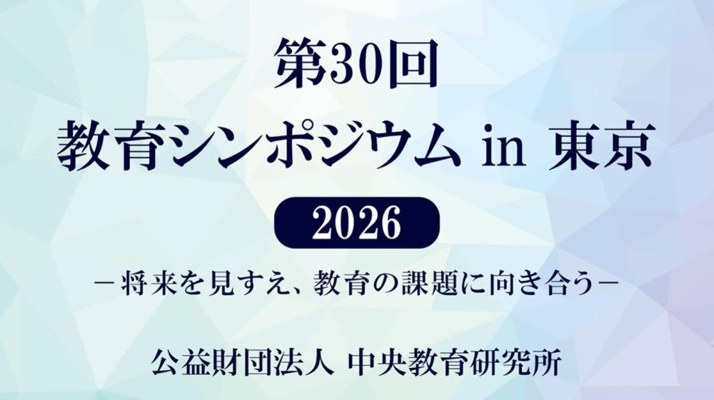 教育シンポジウム in 東京 2026(第30回) 将来を見すえ、教育の課題に向き合う