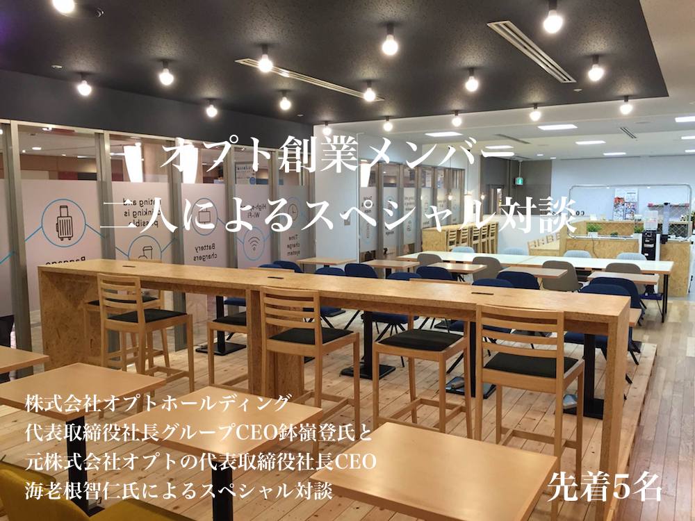 この度、8/22(火)8:00-9:00(開場7:30)に、株式会社オプトホールディング代表取締役社長グループCEO鉢嶺登氏と元株式会社オプトの代表取締役社長CEO海老根智仁氏によるスペシャル対談が、コインスペースにて開催されます。