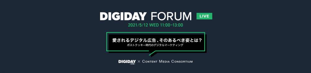 DIGIDAY[日本版]がContent Media Consortium(コンテンツメディアコンソーシアム)と共催する「DIGIDAY FORUM LIVE」(参加費:無料)。このオンラインフォーラムでは、国内有数の広告主やパブリッシャーのエグゼクティブをお招きし、ポストクッキー時代におけるデジタル広告のあるべき姿について語り尽くす。