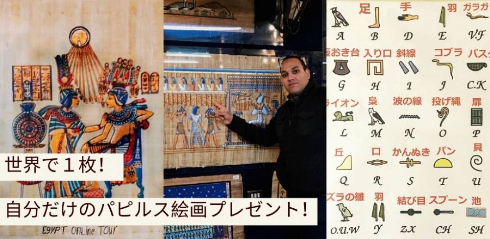 参加者全員に、ご自分のお名前を書き入れた世界に1つだけのパピルス絵画を1枚現地からお送りいたします。