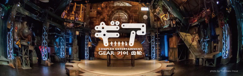 On the vanguard of stage design, GEAR has been recognized by stage technicians from around the world for the creative use of new technologies. Encompassing a span from the lobby to the stage, the set design immerses the audience in a different world, and hidden effects interact with the performers in unexpected ways.