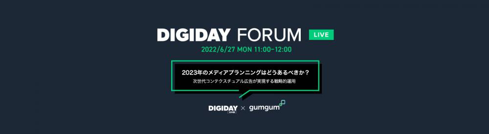 2022年6月27日にDIGIDAY[日本版]がGumGum Japanと共催する「DIGIDAY FORUM LIVE」(参加費:無料)。今回のオンラインフォーラムでは、コンテクスチュアル広告のリーディングカンパニーであるGumGum Japanと広告主との対話から、これからのコミュニケーション、メディアプランニングのあり方を模索する。