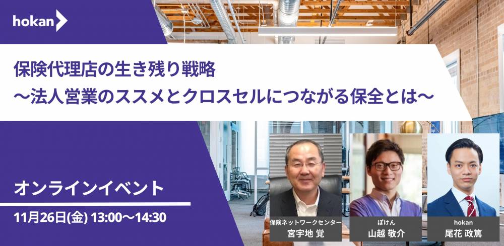 ぽけん株式会社からは、今後の保険代理店のあるべき姿、およびそれを実現する法人営業手法についてご紹介いたします。