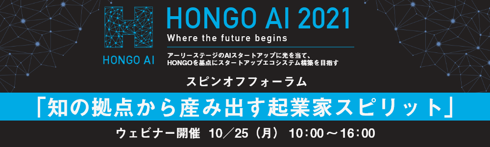 HONGO AI 2021 スピンオフフォーラム「知の拠点から産み出す起業家スピリット」プログラム