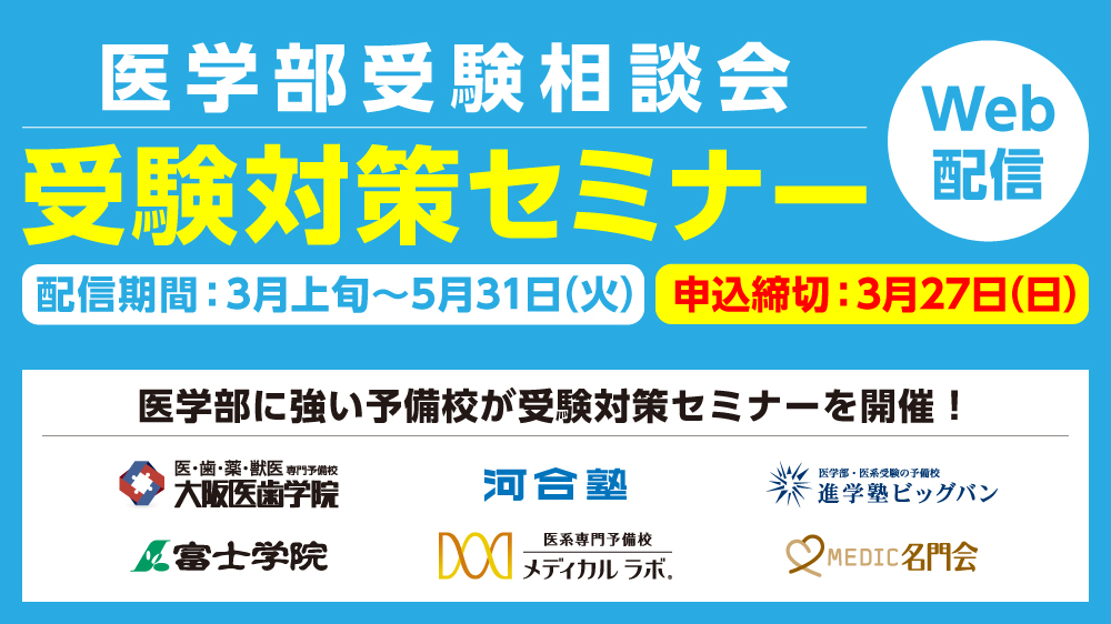 好評につき、本日行われた「受験対策セミナー」のWeb配信申し込み受付を、3月27日まで延長いたします。