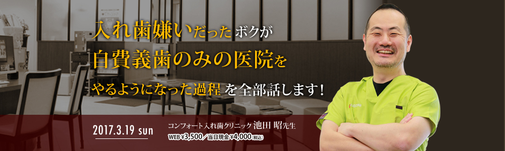 現在、札幌の中心地で自費義歯のみの医院経営をされているコンフォート入れ歯クリニックの池田昭先生がゲストです。