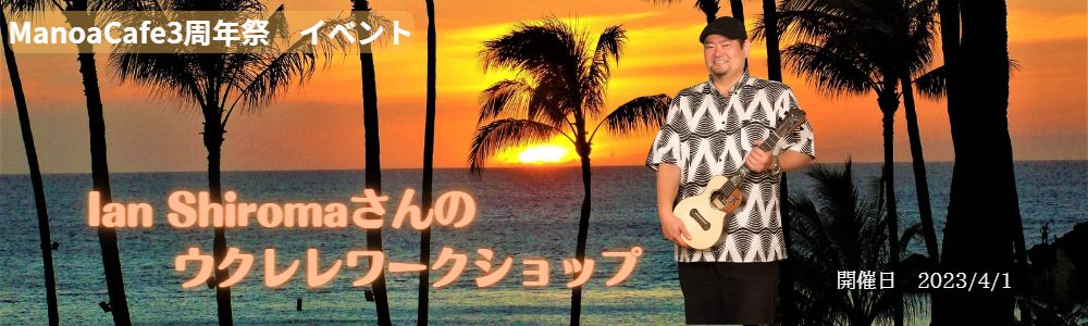 MānoaCafe3周年イベント 第二弾‼ Ian Shiromaさんのウクレレ ワークショップ  2023 4/1(土)| 日出町大神 |