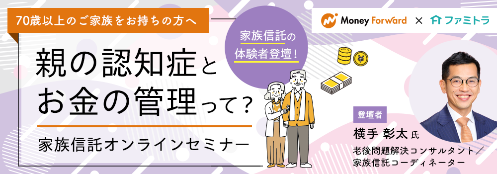 【70歳以上のご家族をお持ちの方へ】 家族信託の体験者登壇!親の認知症とお金の管理って?家族信託オンラインセミナー