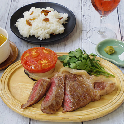 常陸牛の肉のうま味、脂の甘味を焼きたてのステーキで、東京ワイナリーの赤ワインとともにお楽しみください。