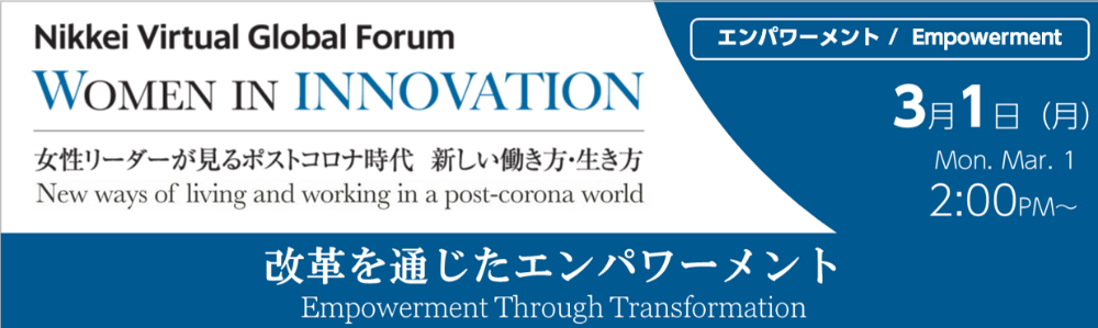 Nikkei Virtual Global Forum/WOMEN IN INNOVATION for Empowerment March 1, 2021