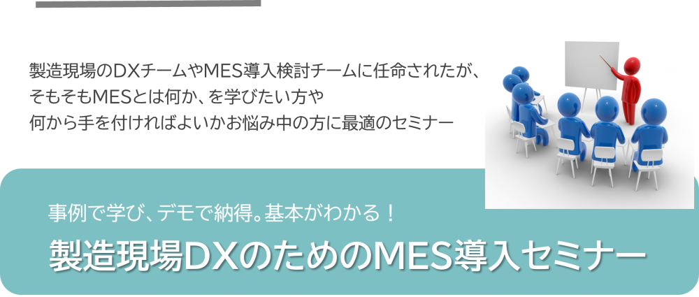 本セミナーは、製造現場のDXチームやMES導入検討チームに任命され「MESとは何か」を学び今後の活動に活かしたい方や、RFI、RFPを準備中の方に最適なセミナーです。