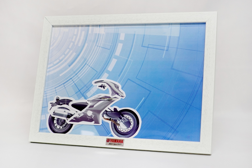 デザインしたバイクを額縁に入れてプレゼント。誰かのことを考えてデザインした「お子さんの思いやり」を記念品に!