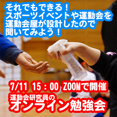 コロナ禍中でもできるスポーツイベント運営のノウハウの研究会です。株式会社運動会屋が作成した実践ガイドラインを紹介いただいて、みなで今後の展開、課題を話あいます。 経営者、地域、学校などのスポーツ関係者、施設管理者、イベント代理店の方等にお...